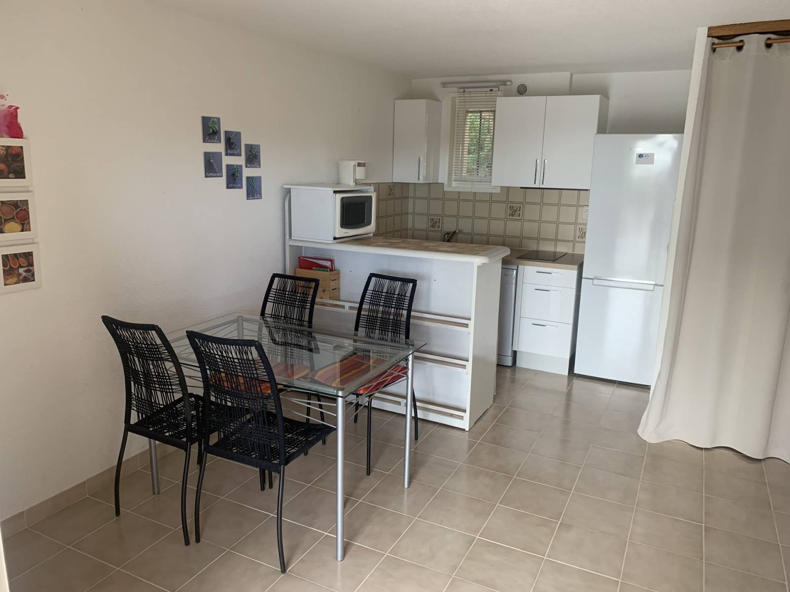 Elle se compose d'un séjour avec une cuisine ouverte et équipée, donnant sur une terrasse abritée et un espace extérieur dégagé et ensoleillée, le tout dans un cadre relaxant et convivial.